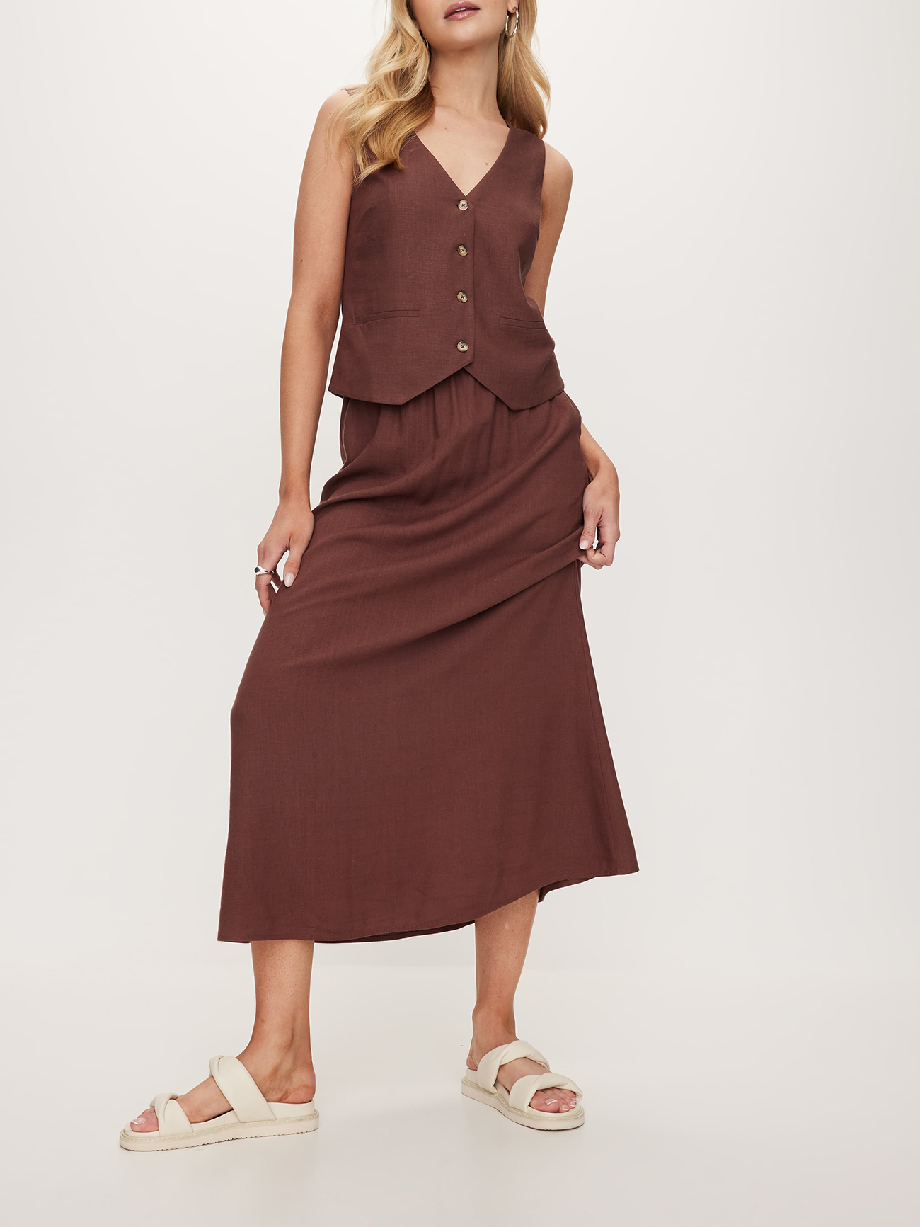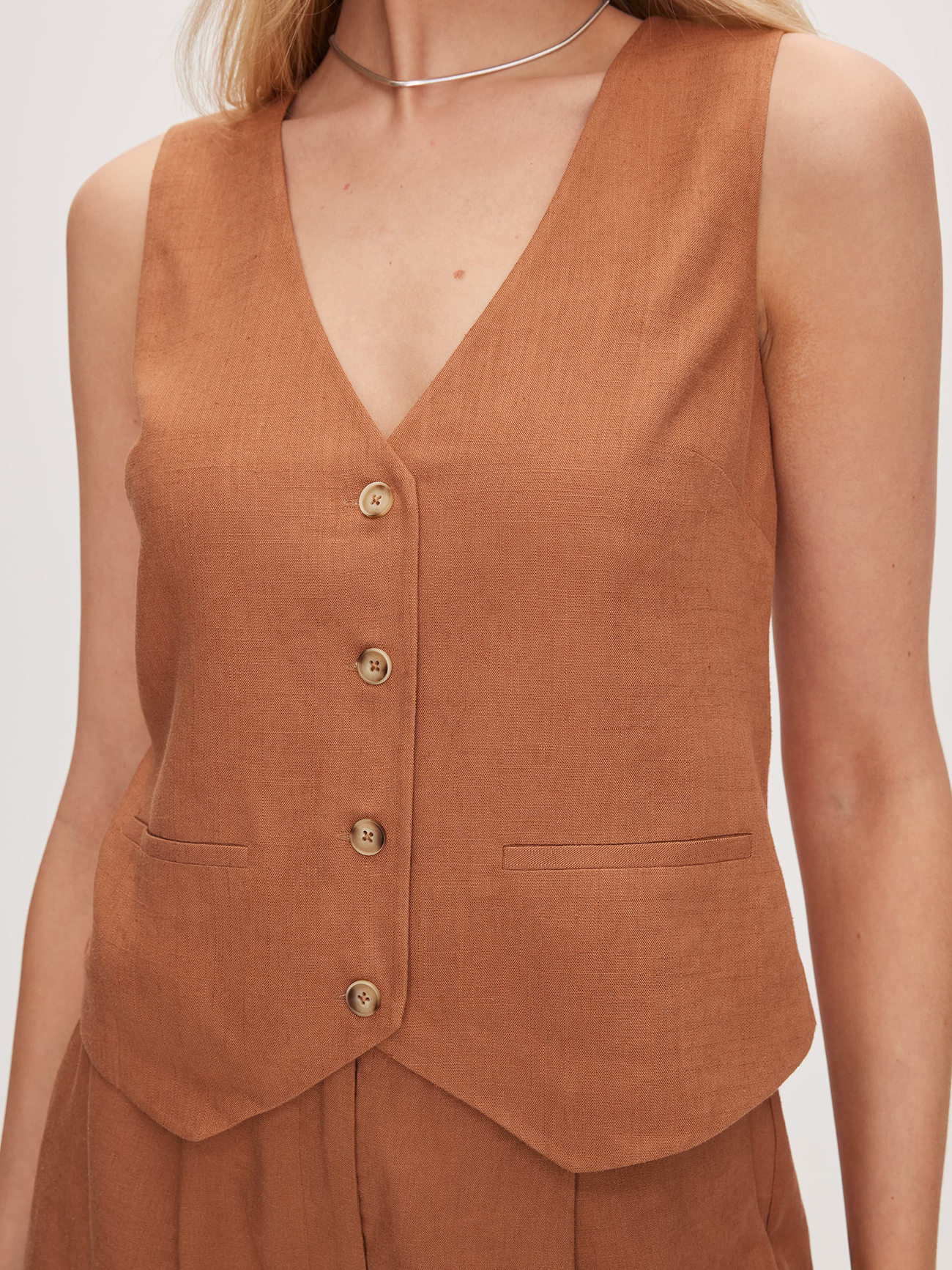 The Maya Vest is an everlasting staple. This vest is chic and laid-back. She can be paired with denim or your favourite Dotti linen pant!